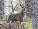Our largest land-mammal. Summer coat is reddish brown to brown, winter coat is brown to grey. No spots present in adult coat. Large, highly branched antlers in the stag (male).
